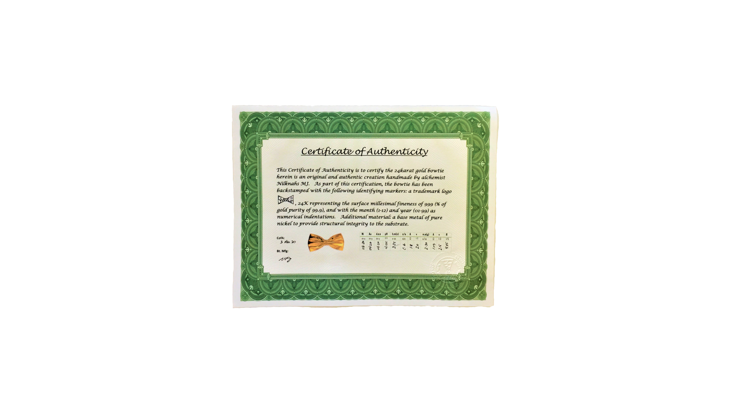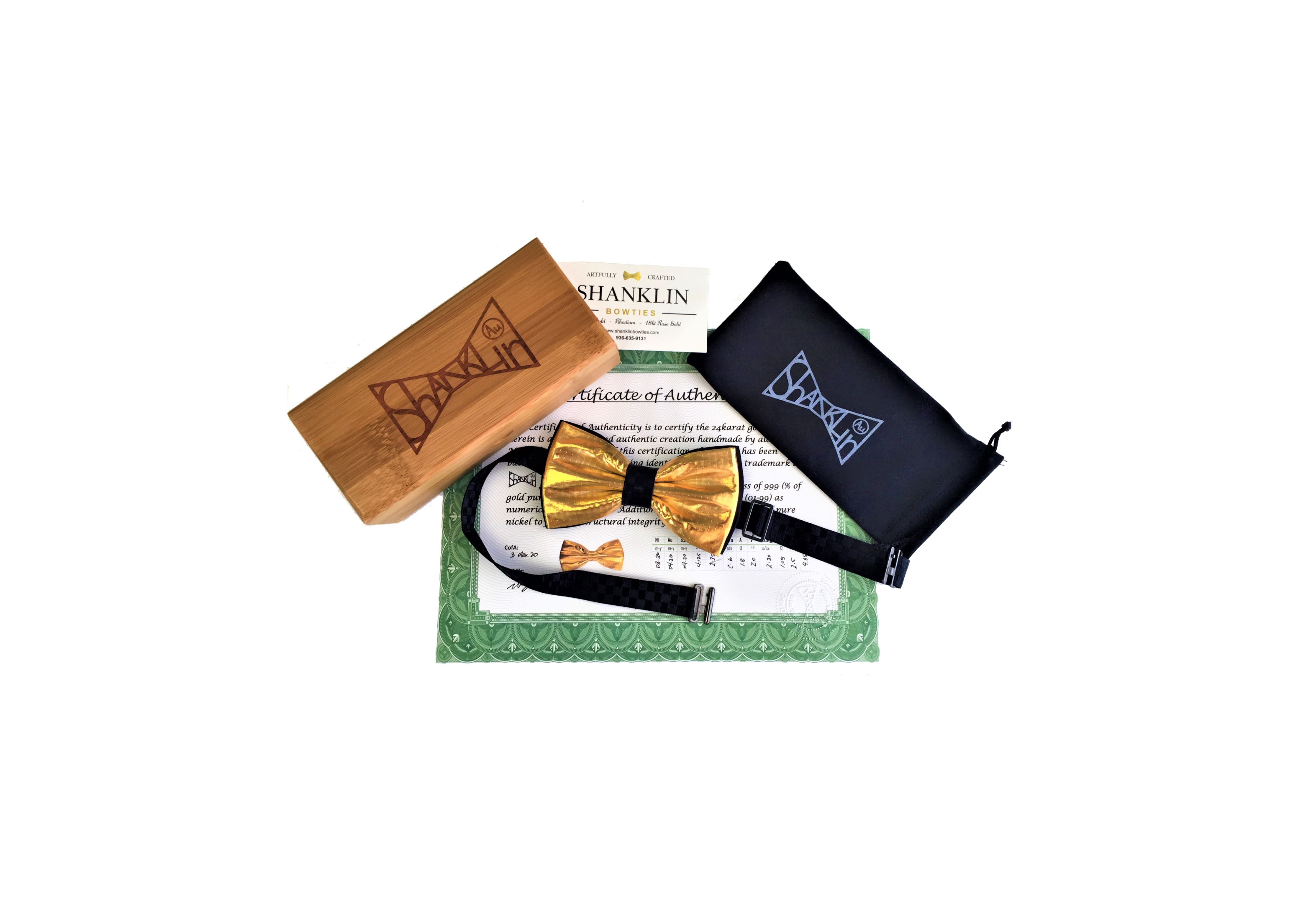 These luxurious BowTies are handcrafted one at a time, only in America and only by Shanklin BowTies. Created with the finest quailty materials and beautiful 24k Gold.